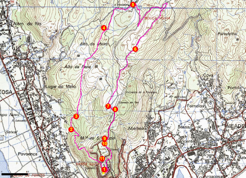 Desta vez fomos até Viana do Castelo para fazer o trilho dos canos de água. Um belo dia de sol com cheirinho a primavera, óptimo para os novos caminheiros se iniciarem. Foram eles o Edgar, a Sónia, a Sofia e a Cláudia. O ponto de partida/chegada situa-se na Santa Luzia de onde olhando á nossa volta podíamos adivinhar o que nos esperava: montanha, mar e cidade. Depois de uma fase inicial onde atravessamos uma enorme zona de mimosas em flor, chegamos aos Arcos do Fincão de onde seguimos pelos canos que ainda hoje fazem parte de um complexo sistema de abastecimento da cidade de Viana do Castelo. Chegados a S.Mamede fez-se a pausa para o almoço, onde assistimos a um triste espectáculo: helicópteros a combaterem um incêndio que lavrava mesmo ali ao lado. Depois do almoço arrepiamos caminho passando pela Aldeia Velha até chegar á Casinha dos Aviões de onde o panorama é soberbo. A parte final do percurso foi sempre a descer passando por um parque de lazer com miradouro, pela carreira de tiro, por uma antiga citânea, até chegarmos á Santa Luzia. Como o sol ainda ia alto houve tempo ainda para ir ate á praia do Cabedelo, onde desfrutamos de um belo por do Sol á beira-mar. Parabéns aos principiantes que se integraram muito bem no espírito do "Trilhos a Norte". | |||||||||||||||||||||||||||||||||||||||||||||||||||||||||||||||||||||||||||||||||||||||||||||||||