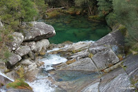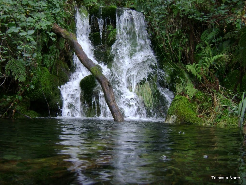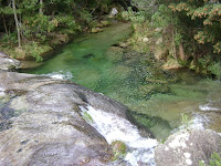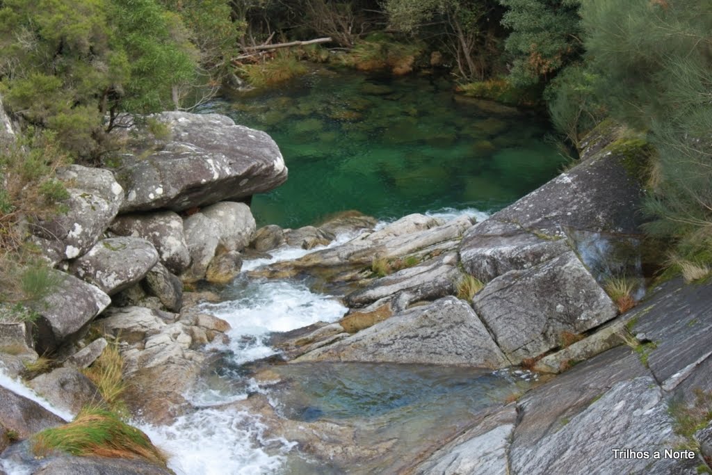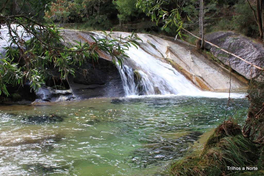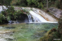 Após pausa merecida para enganar o estômago, continuamos o caminho que desce agora pelo vale do ribeiro de S.João. O trilho leva-nos a uma ponte que nos permite atravessar o ribeiro seguindo em direcção á aldeia. E foi nesse local que tivemos mais uma agradável surpresa! Antes de atravessar a ponte resolvemos enveredar por entre a vegetação e descer um pouco mais, já fora do trilho, sempre junto á linha de água na procura de algo que nos surpreendesse e de repente diante de nós surge uma belíssima queda de água e lagoa natural com as suas águas límpidas, num local paradisíaco! Descemos mais um pouco e "outra" ainda maior! Que maravilha! Só foi pena o tempo não estar convidativo, porque a vontade de nos atirar lá para o meio era enorme. Fica para a próxima.