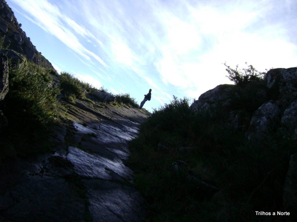 O trilho tem o seu início/fim junto da igreja de Arga de S.João e passa, entre outros, pela Pedra Alçada e pelo Mosteiro de S.João D'Arga. Saindo da igreja tomamos um caminho lajeado e enveredamos montanha acima. Esta primeira parte do trilho é sempre a subir até á Pedra Alçada, cerca de 4,5 kms com alguns declives bem acentuados, mas á medida que os nossos horizontes vão aumentando começa a valer a pena o esforço da subida. Num passo certo rapidamente chegamos á Pedra Alçada, ponto mais elevado do lado oeste da serra e belíssimo miradouro. E que miradouro este! Para além da vista privilegiada para o oceano Atlântico, conseguimos vislumbrar entre outros: o vale do rio Lima bem como o seu estuário, Viana do Castelo, o vale do Âncora, Vila Praia de Âncora, Caminha, o Minho e a sua foz, Santa Tecla já em terras galegas, e muito, muito mais! Nem o vento forte e frio que soprava nos fazia abandonar o local. Sobe penedo, desce penedo, mais um marco geodésico, mais uma fraga, estávamo-nos a divertir e isso era o importante!