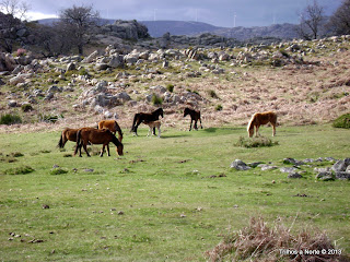 Nesta altura atingimos a cota máxima do dia, seguimos para oeste em direcção á Felgueira Ruiva onde nos deparamos com um belo conjunto de cavalos que por ali se alimentavam e onde o respectivo macho dominante se mostrava muito empenhado na luta pela manutenção da espécie. A mãe Natureza a funcionar em pleno!