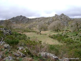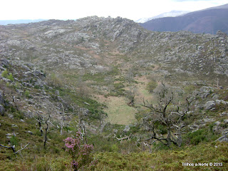 O nosso caminho levou-nos depois a atravessar o Rio da Armada junto do local onde este dá lugar á Corga do Malho, passagem pela Anta, pelo Chão da Roca, até chegar-mos ao Curro da Velha. Aqui apanhamos boleia do PR que passa nesta branda o qual seguimos durante umas centenas de metros. No local onde o PR segue para este em direcção a Pousios seguimos para noroeste, passando junto de umas cercas e de umas construções em ruínas, e depois de uma breve subida estávamos no Salgueiral.