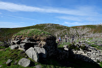 Partindo de junto do paredão da barragem seguimos em direcção á antiga aldeia de Vilarinho da Furna, agora submersa, acompanhando o traçado da recentemente inaugurada GR 34 Trilho Interpretativo da Serra Amarela. Ao chegar perto da antiga aldeia tivemos aí o "caso" do dia: a albufeira estava cheia, provavelmente na sua cota máxima, devido á abundante chuva das semanas anteriores e o trilho simplesmente desapareceu, submergido pelas águas. Mais precisamente desde o local onde encontramos uma fonte em pedra do nosso lado esquerdo até á aldeia. Não posso precisar ao certo mas serão cerca de 200 a 300 metros de caminho que desaparece "afogado", tal como a antiga aldeia.