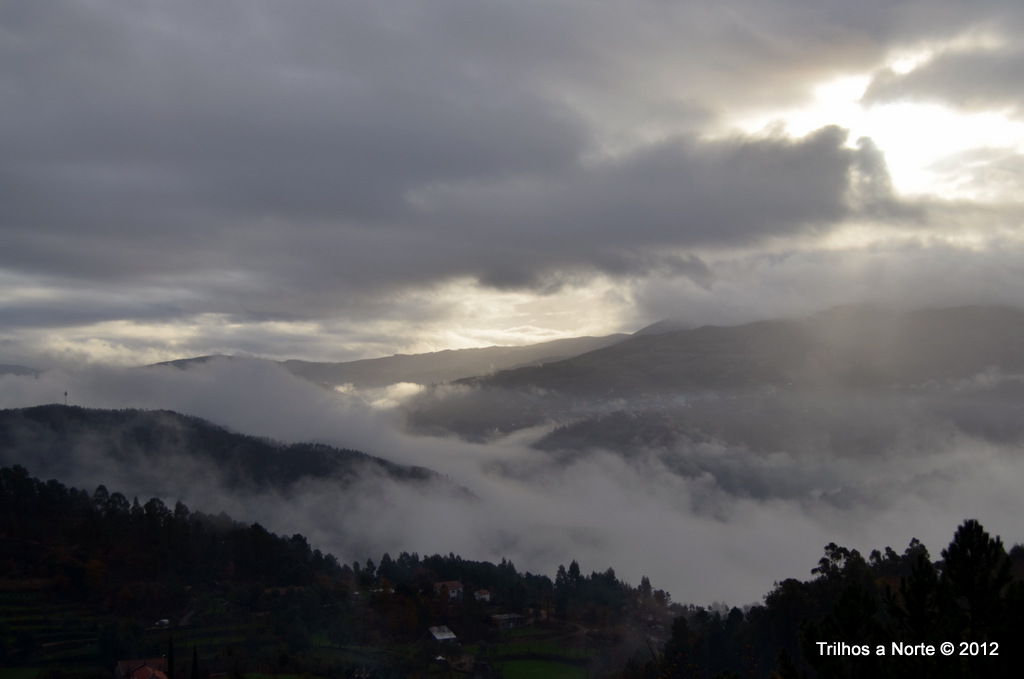 Bela caminhada esta! Por tudo! Ambiente descontraído, muita conversa, astral elevado, muitas calorias para queimar, curta mas que se tornou longa, fria mas óptima para aquecer e um nevoeiro que quando aparecia dava uma beleza adicional á serra.