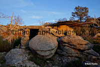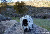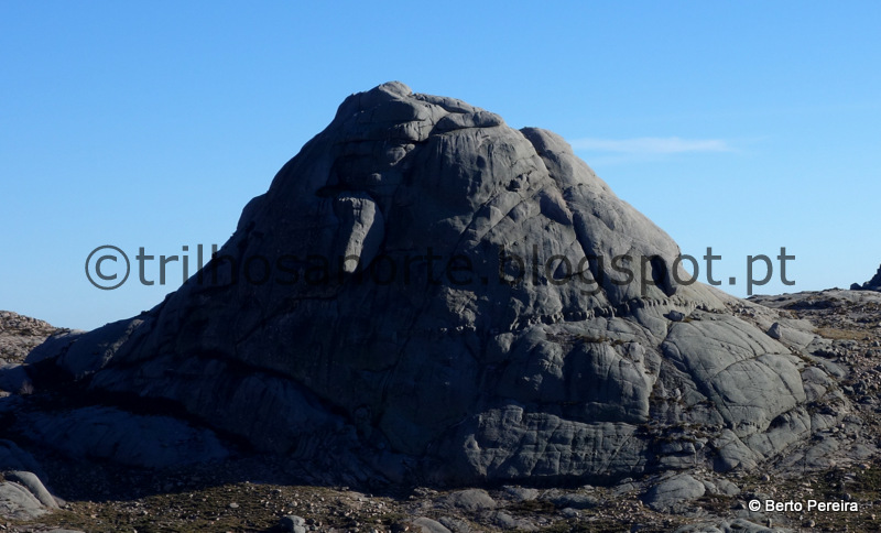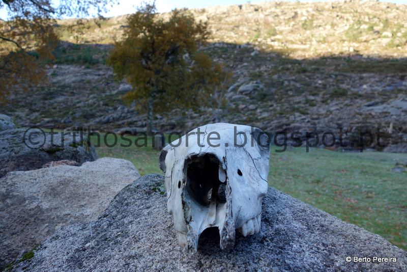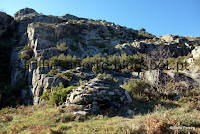 Retomando o caminho descemos até junto do antigo curral da Roca Negra, flectimos á direita e continuamos a descer passando a norte da meda da Rocalva. Nesse local, e apesar de lá já ter passado algumas vezes sem nunca me ter apercebido, acabei por reparar nos restos (ruínas) do que pareceu ser um antigo abrigo de pastores. Se alguém souber a sua designação agradeço desde já a informação.