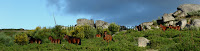 A ideia original partiu do camarada David. Passava por efectuar uma caminhada linear ligando a barragem da Queimadela em Fafe á barragem das Andorinhas na Póvoa de Lanhoso, cruzando obrigatoriamente a Serra do Merouço que serve de fronteira natural entre estes dois concelhos. Meti as mãos á massa e depois de uma atenta olhadela nas cartas militares lá se consegui idealizar um trajecto. O trilho 'inventado' aproveita algumas partes de PR's existentes, tanto no lado de lá como no lado de cá, tendo-se depois acrescentado vários troços de ligação entre eles. O resultado final foi excelente. O trilho percorre belos e ancestrais caminhos de montanha, rurais e de pé posto que fazem a ligação entre várias aldeias. Caminhos que nos fazem perder no tempo e imaginar o quanto mágica seria a vida por estas 'bandas' antigamente, quando todos eles tinham um uso intensivo e se encontravam limpos e desimpedidos. Quem tem por hábito caminhar pelas terras altas de Fafe sabe do que estou a falar. O percurso com cerca de 18,6 kms. (13 por terras fafenses e 5,6 por terras de Lanhoso) foi feito no sentido sul/norte (Queimadela > Andorinhas) atravessando as seguintes aldeias: Pontido, Assento, Queimadela, Luílhas e Várzeas, esta última já em terras da Maria da Fonte. A passagem pela Laje Branca e pelo Merouço, dois miradouros de excelência, não deixa ninguém indiferente. Situados a quase 900 m. de altitude, permitem-nos umas amplas e brutais panorâmicas, quer seja para norte, sul, este ou oeste. Cabreira, Gerês, Alvão, o Monte Farinha com a Sra. da Graça lá no alto e, imaginem, a Serra d'Arga bem lá ao longe, entre outros! De referir também que a serra do Merouço é um terreno de eleição para a observação de várias espécies de animais, com destaque para os garranos. Em liberdade, encontram-se por lá em grande quantidade e desta vez não foi excepção. Maravilha! Nada mau para uma caminhada iniciada ás 3h. da tarde de um Domingo, mesmo á 'preguiceiro', e terminada ao fim do dia com um belo pôr-do-sol junto das águas calmas da barragem das Andorinhas! Sabia de antemão o que poderia encontrar, não contava era com tanto! E aqui tão perto, á portinha de casa! A repetir brevemente! | |||||||||||||||||||||||||||||||||||||||||||||||||||||||||||||||||||||||||||||||||||||||||||||||||||||||||||||||||||||||||||||||||||||||||||||||||||||||||||||||||||||||||||||||||||||||||||||||||||||||||||||||||||||||||||||||||||||||||||||||||||||||||||||||||||||||||||||||||||||||||||||||||||||||||||||||||||||||||||||||||||||||||||||||||||||||||||||||||||||||||||||||||||